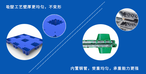 1. 采用双层吸塑工艺壁厚更均匀,不变形,底托可内置钢管.